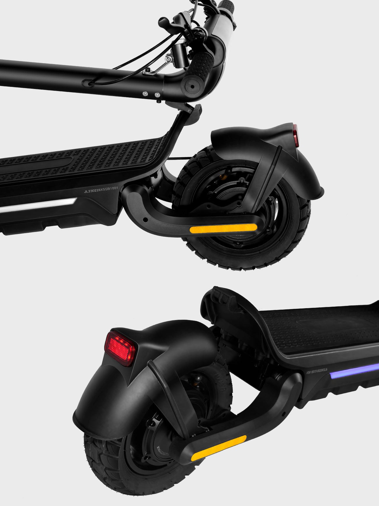 Ride comfortably on a wide deck featuring illuminated side strips for safety, powered by a 48V 13Ah/15Ah battery and intelligent controller for longer, worry-free journeys.